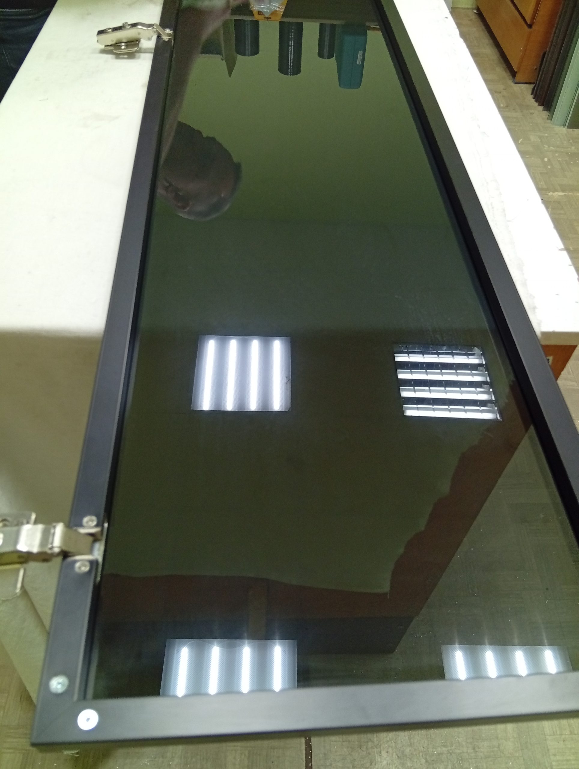 У нас можно заказать изготовление алюминиевых фасадов со стеклом и зеркалом и тем самым обновить Вашу мебель. Большой выбор стекла в мастерской позволяет в одном месте заказать и стекло, и профиль для дверцы в сборке. Вы получаете готовое изделие, которое остаётся просто навесить вместо старой дверцы.