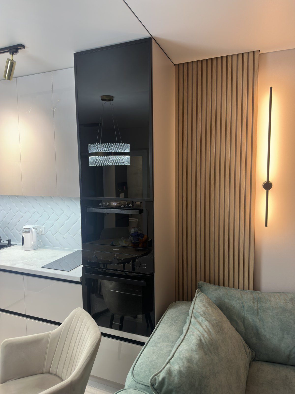 Дверца в кухонном пенале в сочетании с духовым шкафом