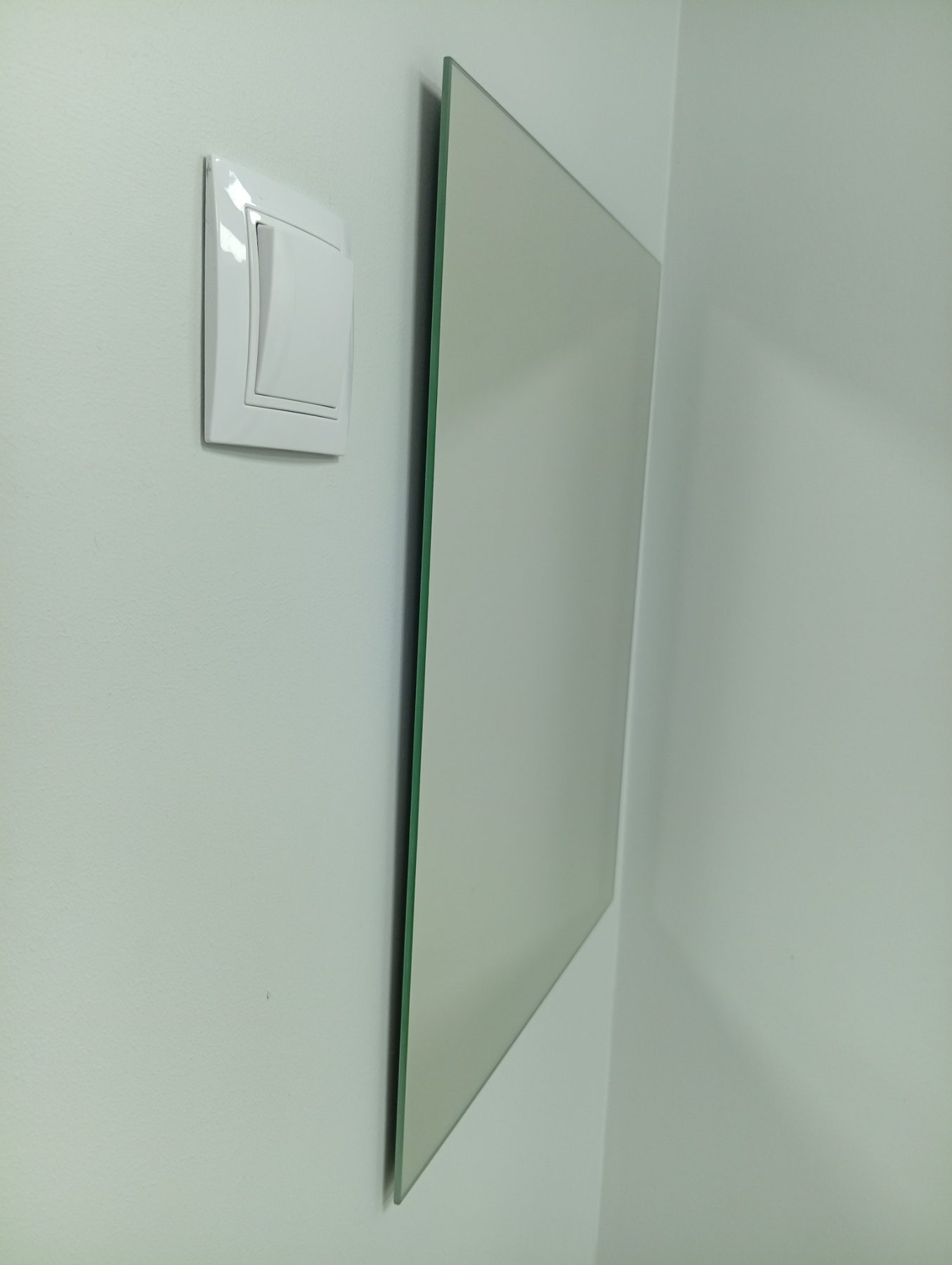 Зеркало с пластинами для крепления на стену. Обработка кромки — шлифовка.